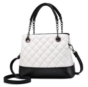 Real Leather Women’s Bag Elegant Style White & Black Color Quilted Design Fashion Hand Carry Ladies Bags