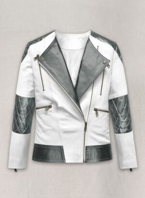 Lambskin Leather Women’s Jacket Biker Style White Color With Quilted Sleeves Design Motorbike Jackets