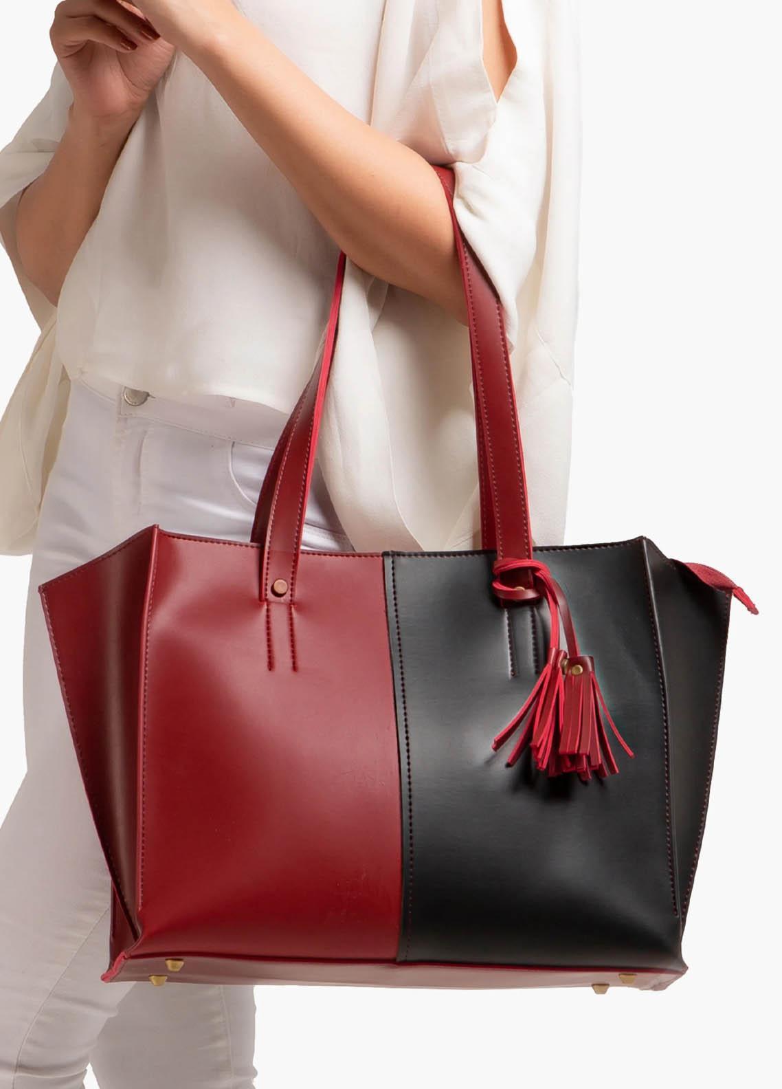 Original Leather Tote Bags For Women In Black & Red Color With Shoulder Strap Large Space Fashion Hand Bags For Ladies